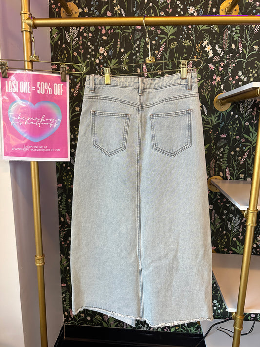 Rhinestone Midi Length Denim Skirt